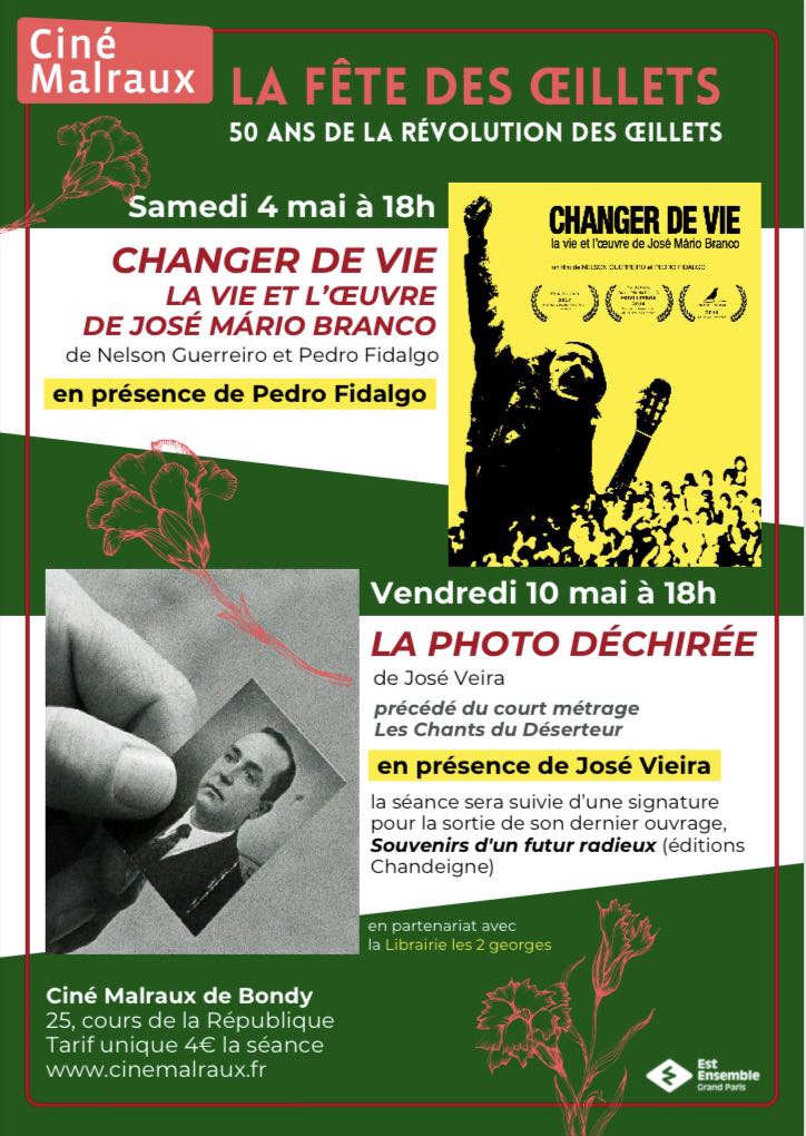 –Changer de Vie, a vida e a obra de José Mário Branco, um documentário de Nelson Guerreiro e Pedro Fidalgo, projecção seguida por um debate, sábado 4 de maio às 18h00, no Ciné Malraux de Bondy, 25 cours de la République – Bondy