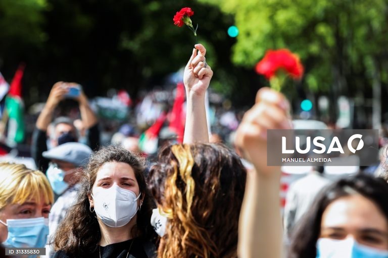 Fotos da agência Lusa da manifestação do 25 de abril de 2021 em Lisboa:
