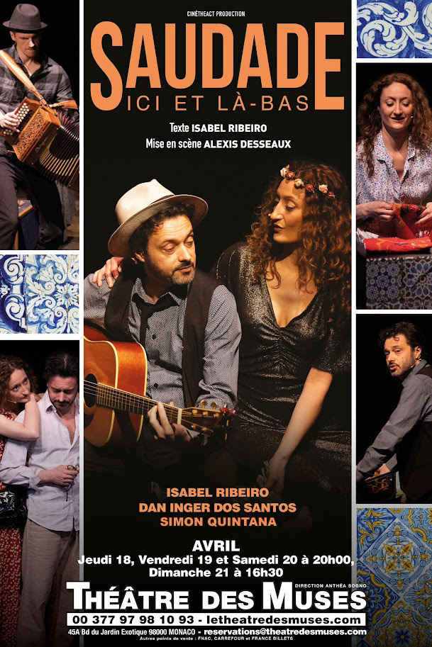 –Saudade, ici et là-bas, peça de teatro musical, vai ser representada de 18 a 21 de abril no Théâtre des Muses, no Mónaco. Paralelamente, a companhia de teatro continua a sua campanha de financiamento participativo para marcar presença no Festival de Avignon OFF 2024.