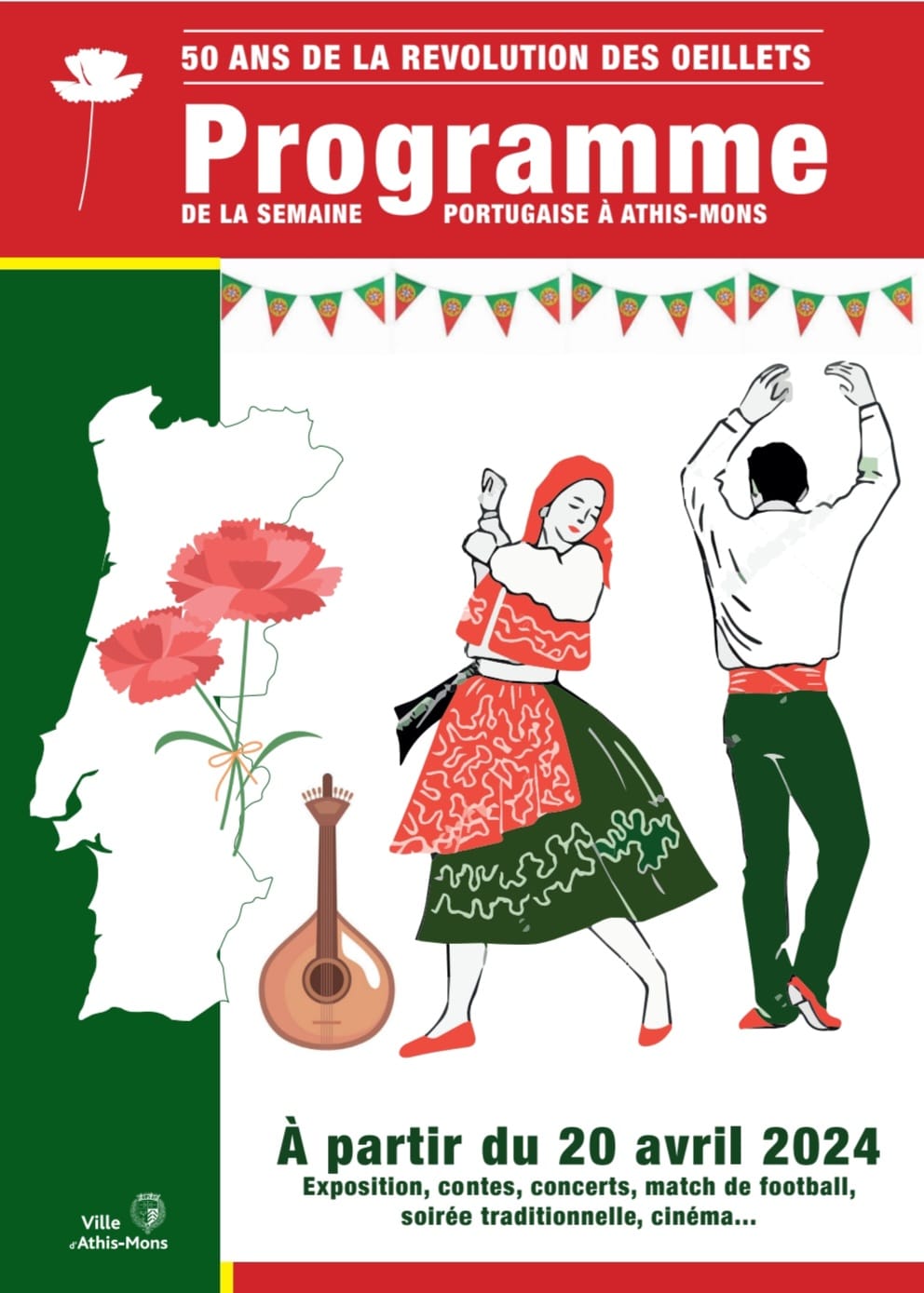 –Semana portuguesa a partir do dia 20 de abril em Athis-Mons para celebrar os 50 Anos da Revolução dos Cravos. No programa: exposição, contos, concertos, futebol, noite tradicional, cinema…