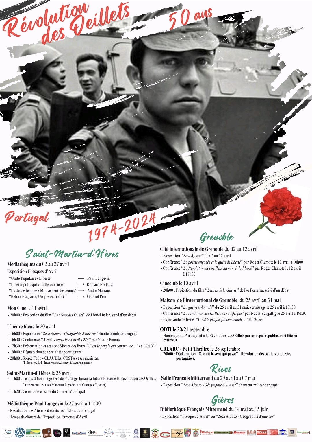 –Exposições, debates, apresentação de livros, concertos, vão ritmar as comemorações do 25 de abril 1974 em Saint-Martin-d’Hères, Grenoble, Rives e Gières