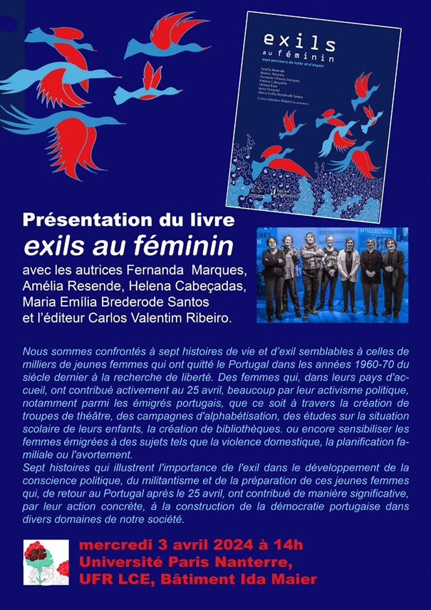 na Universidade Paris Nanterre, e dia 4 de abril na Maison du Portugal, Champigny-sur-