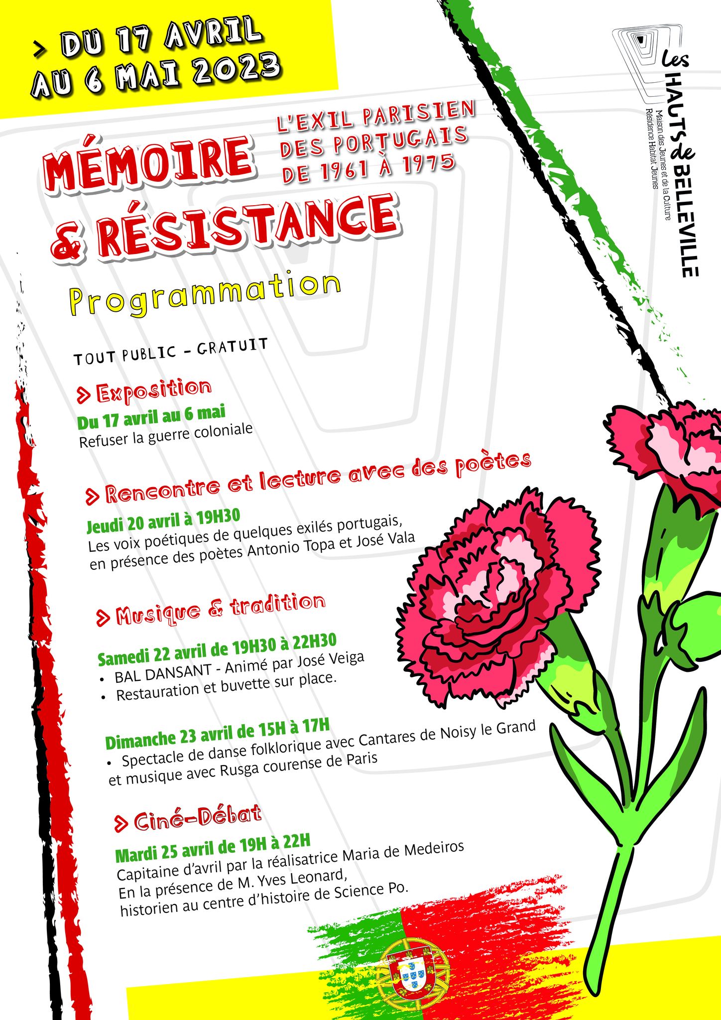 –L’exil parisien des portugais de 1961 à 1975 – Mémoire & Résistance; Résistance, de 17 de Abril até 6 de Maio, na Association Les Hauts de Belleville, 43 rue du Borrégo Paris 20.