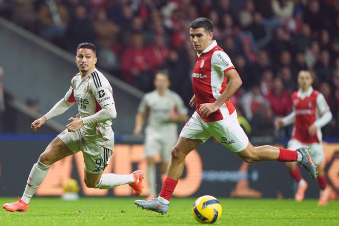Os ‘encarnados’ estiveram na frente do marcador, com um golo do argentino Nicolás Otamendi, aos 29 minutos, mas o uruguaio Rodrigo Zalazar, aos 38, de grande penalidade, e o espanhol Pau Víctor, aos 45+1, operaram a reviravolta dos minhotos, antes de o norueguês Fredrik Aursnes fixar a igualdade final, aos 53.