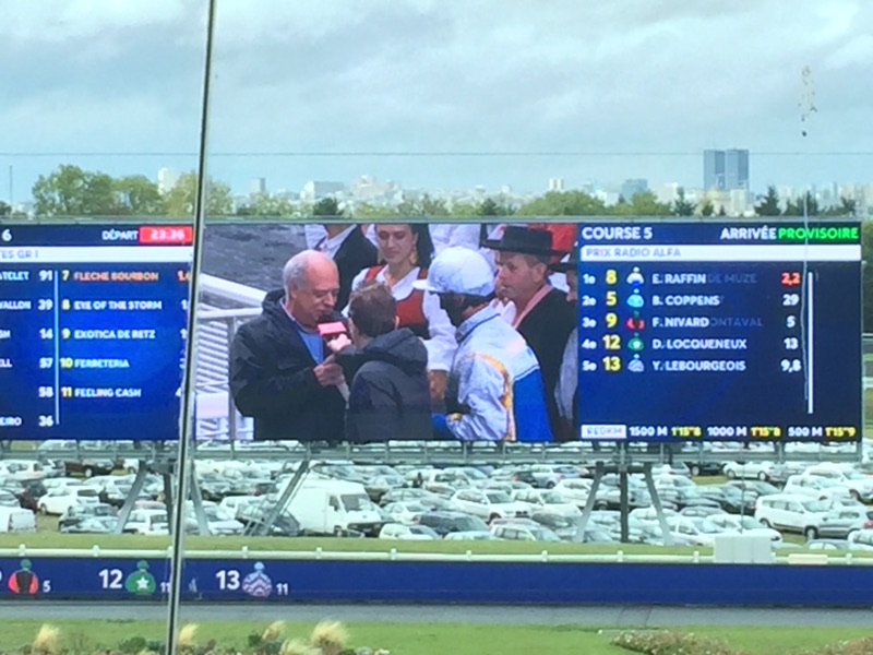 Quando o diretor de antena da Alfa, Daniel Ribeiro, falava no pódio (imagem do ecrã gigante do hipódromo) e felicitava Éric Raffin pela vitória