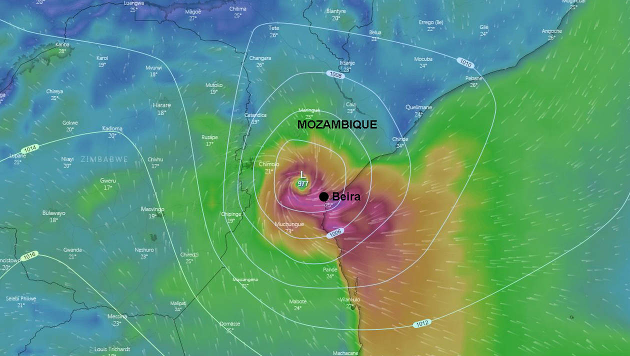 O ciclone atingiu a cidade da Beira, uma das maiores de Moçambique, na quinta-feira, tendo seguido depois para oeste, em direção ao Zimbabué e ao Malaui, afetando mais alguns milhares de pessoas, em particular nas zonas orientais da fronteira com Moçambique.