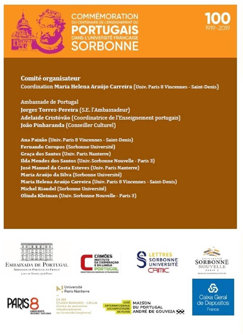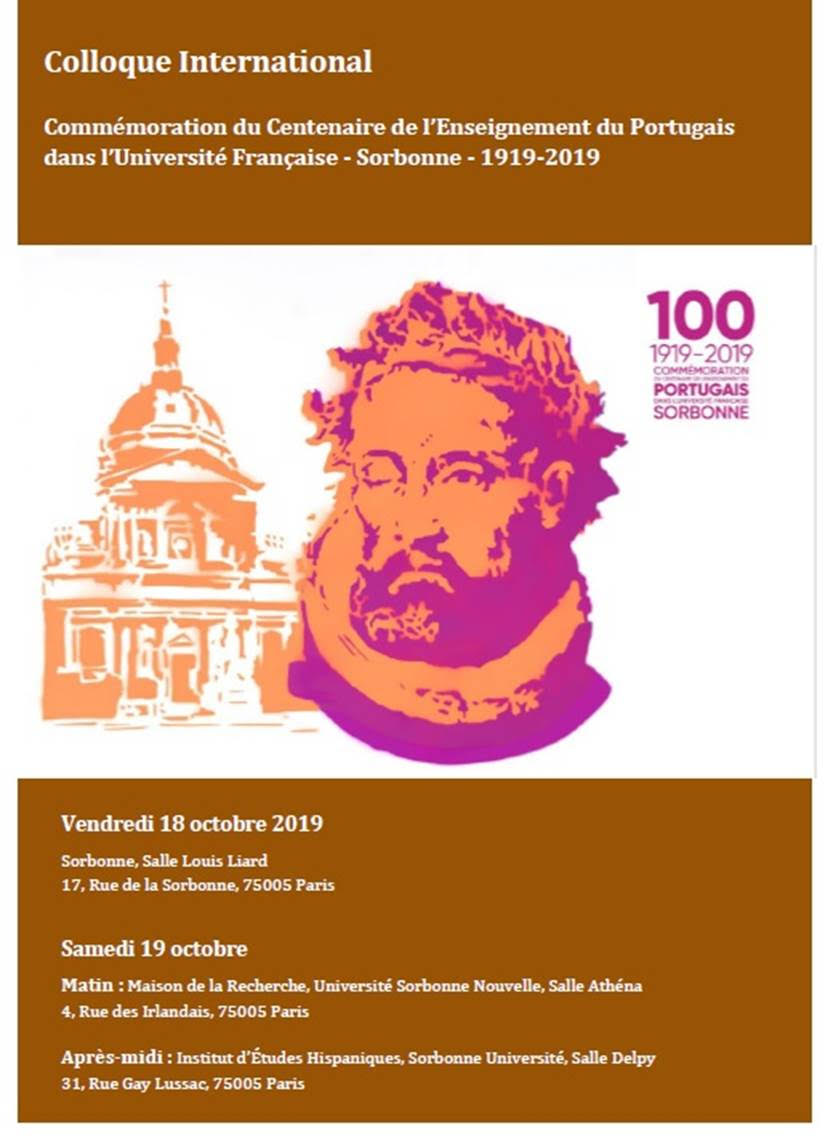 « Nos próximos dias 18 e 19 de outubro decorre um Colóquio Internacional a pretexto da Comemoração do Centenário do Ensino de Português na Universidade em França.