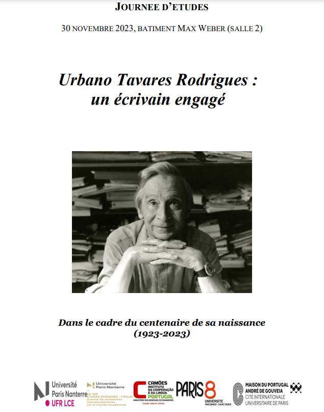 -Jornada de Estudos “Urbano Tavares Rodrigues: un écrivain angagé”, no quadro do centenário do nascimento do seu nascimento (1902-2023), dia 30 de novembro na Université Paris Nanterre, Batiment Max Weber (Salle 2) a partir das 9 horas.