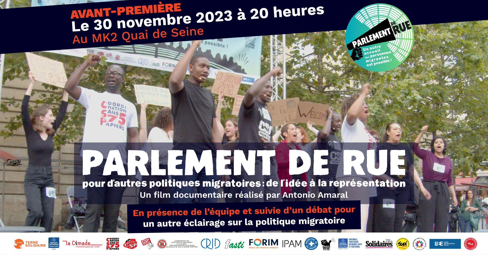 documentário “Parlement de Rue”, do realizador António Amaral. Um documentário que retraça a criação do Parlamento de rua a favor de outras políticas migratórias das pessoas migrantes, uma peça de teatro representada no dia 1 de julho em Paris.