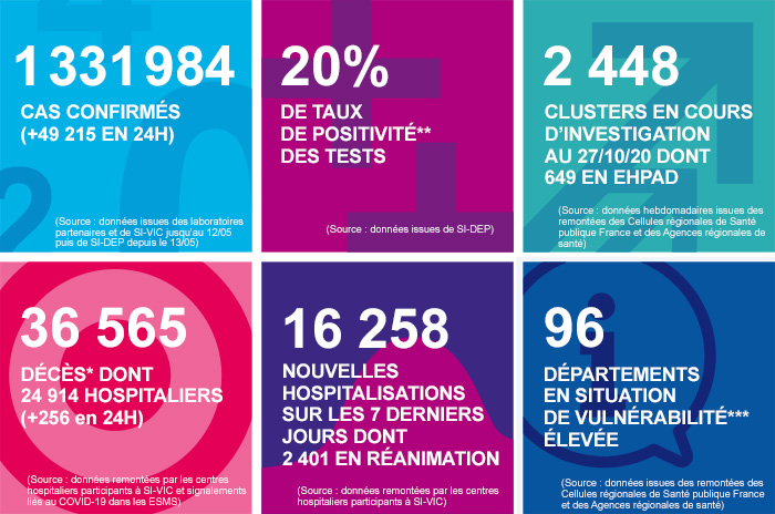 Covid-19/França. 256 mortos em 24 horas; novos casos diários (49.215) voltam a subir em França – Santé Publique France (SPF)
