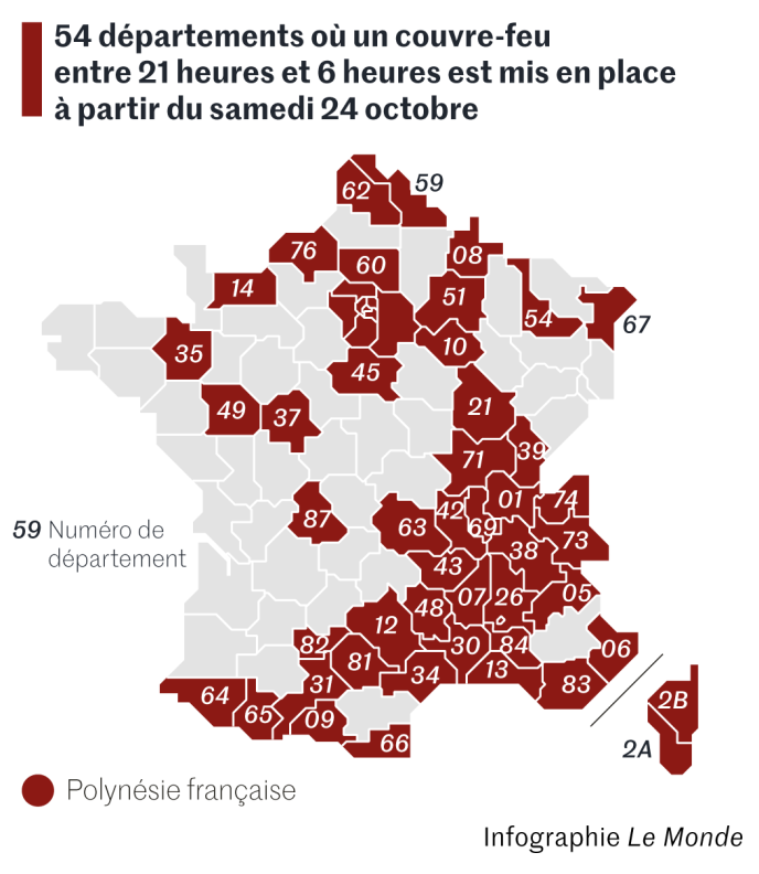 Confira aqui o mapa do recolher obrigatório em França (Infografia do jornal Le Monde):