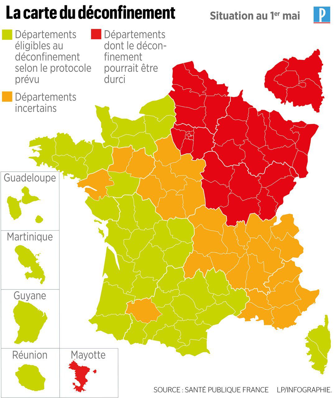 De modo a preparar o fim do confinamento, o diretor-geral da Saúde vai passar a divulgar todos os dias a classificação das diferentes regiões francesas em verde, laranja e vermelho de modo a verificar a propagação de vírus no território.
