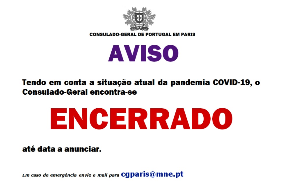 CODIV-19: PORTUGAL FECHA TODOS OS CONSULADOS EM FRANÇA.