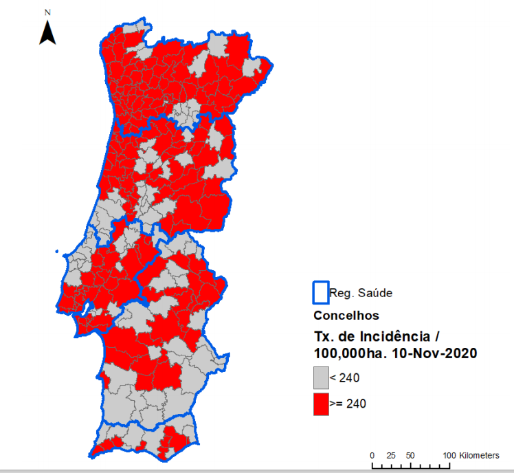 Mapa dos concelhos de alto risco covid-19: