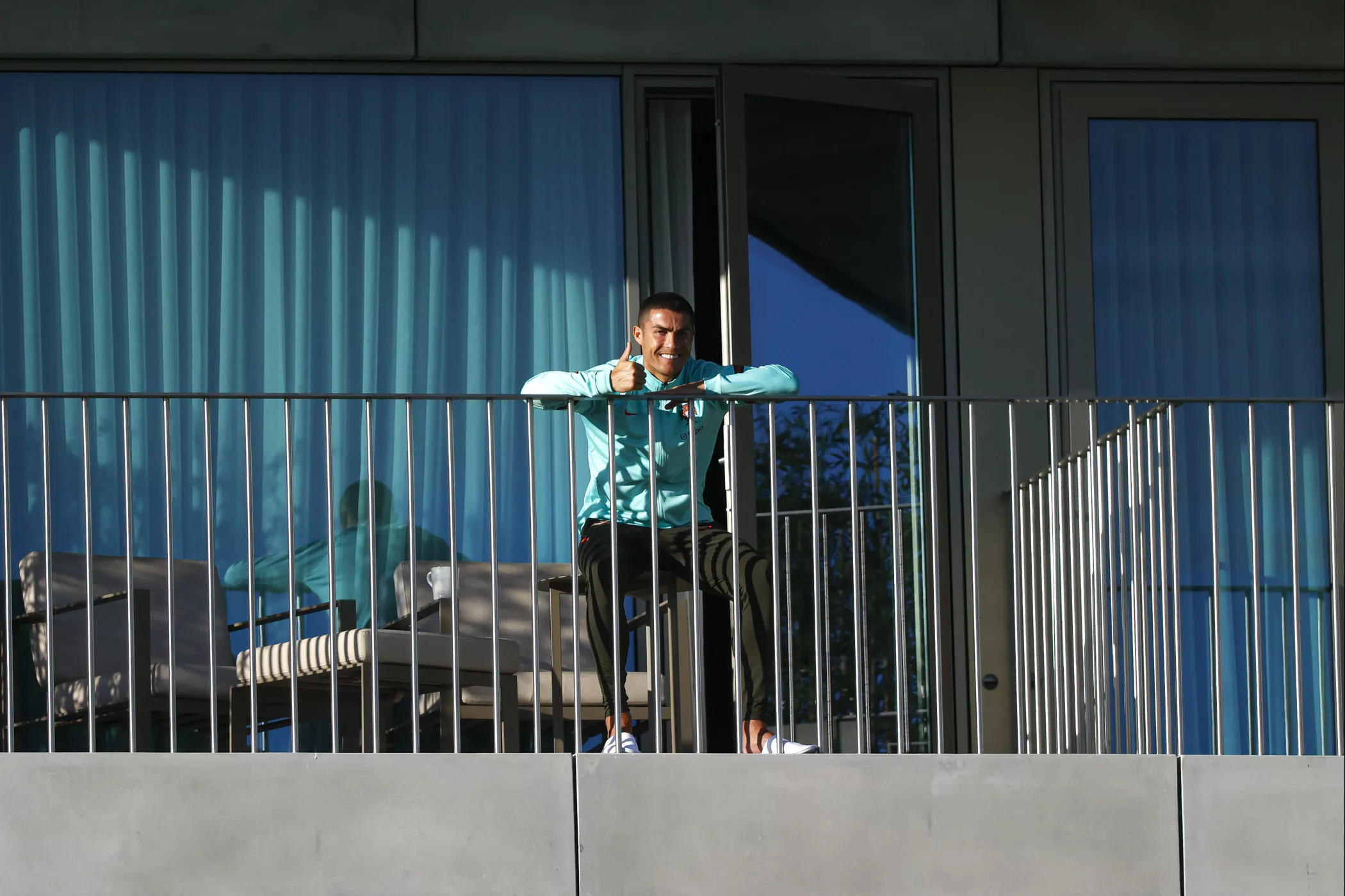 Covid-19: CR7, isolado e bem disposto, assiste a um treino da seleção na Cidade do Futebol/Oeiras.