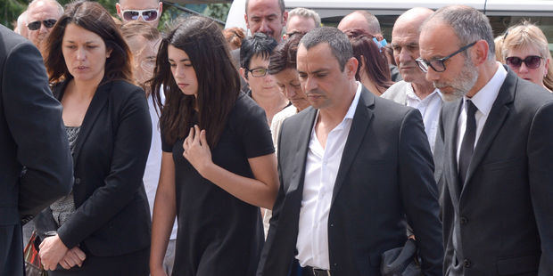 A cerimónia na igreja de La Tour-du-Pin, com um limite de 400 lugares reservados para a família e para os amigos mais próximos, foi transmitida num ecrã gigante colocado num pátio exterior nas imediações do edifício, onde cerca de 200 pessoas, incluindo jornalistas, permaneceram durante as exéquias.