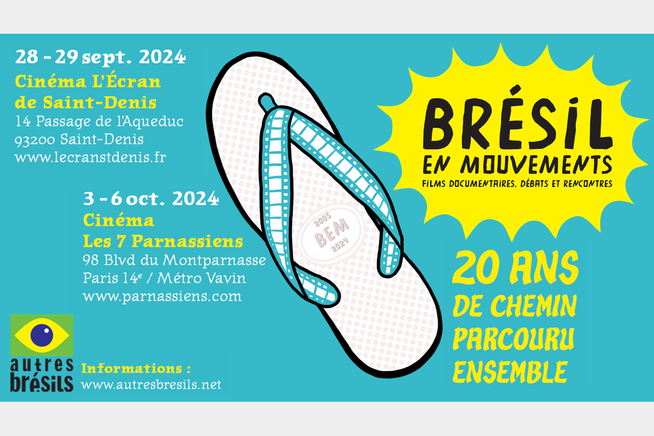 -20 a edição do Festival de cinema documentário brasileiro, dias 28 e 29 de setembro no Cinéma l’Ecran de Saint-Denis (93) e de 3 a 6 de outubro no Cinéma Les 7 Parnassiens (Paris 14)