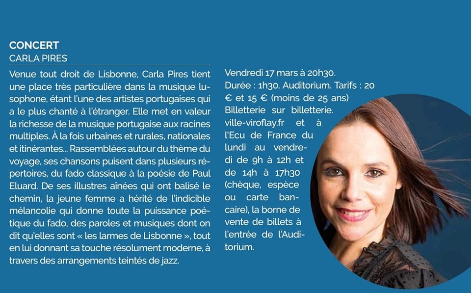 Carla Pires, fadista, que vai actuar na 6ª feira 17 de Março, no Auditorium de Viroflay