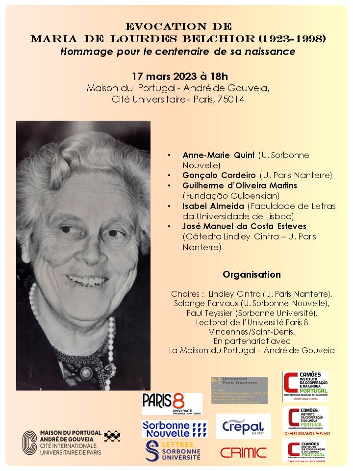 -Actividades da Maison du Portugal – André de Gouveia na Cidade Universitária de Paris: Homenagem a Maria de Lourdes Belchior, conferência recital dedicados a Eugénio de Andrade e conferência sobre “La Maison des étudiants portugais (1967-1974) ” – um historial.