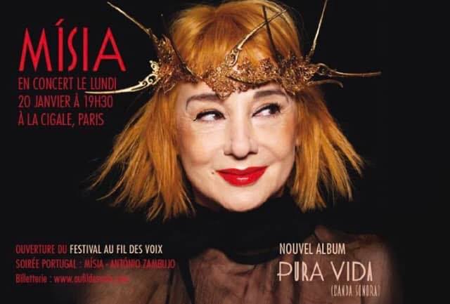 – Mísia faz a abertura do Festival « Au fil des Voix », dia 20 de Janeiro na Cigale. Concerto para apresentar o album « Pura Vida (Banda Sonora) ». António Zambujo também participa no espetáculo.