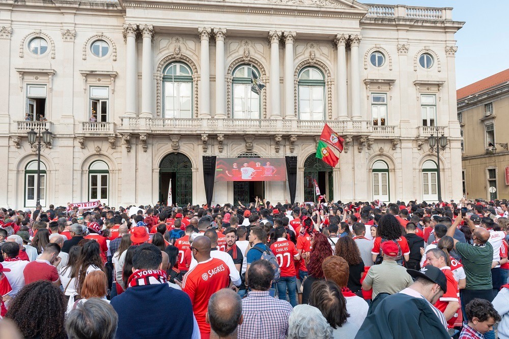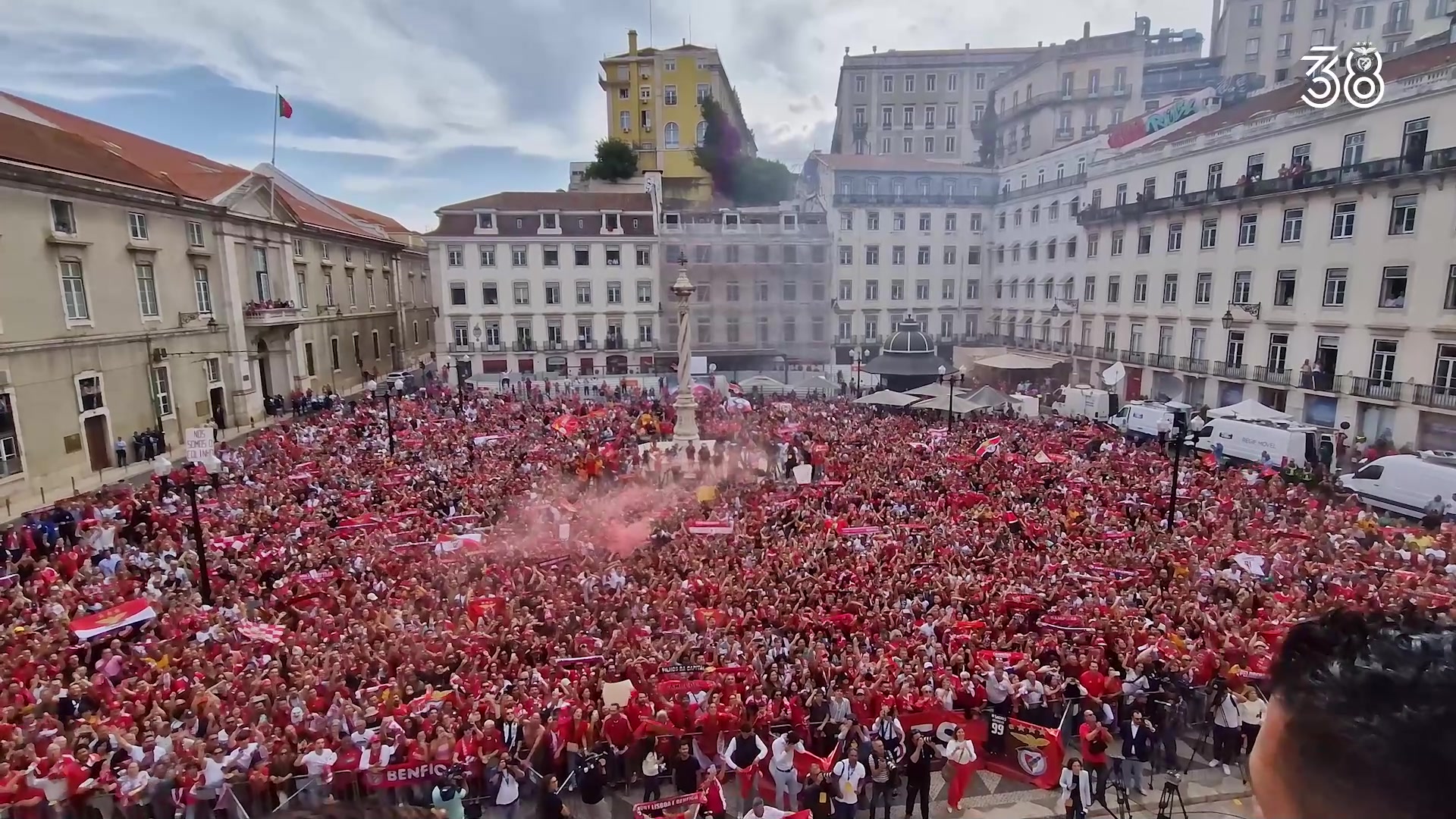 Milhares de adeptos encheram a praça da Câmara, que foi pequena para todos os que aí pretendiam seguir os festejos dos campeões.