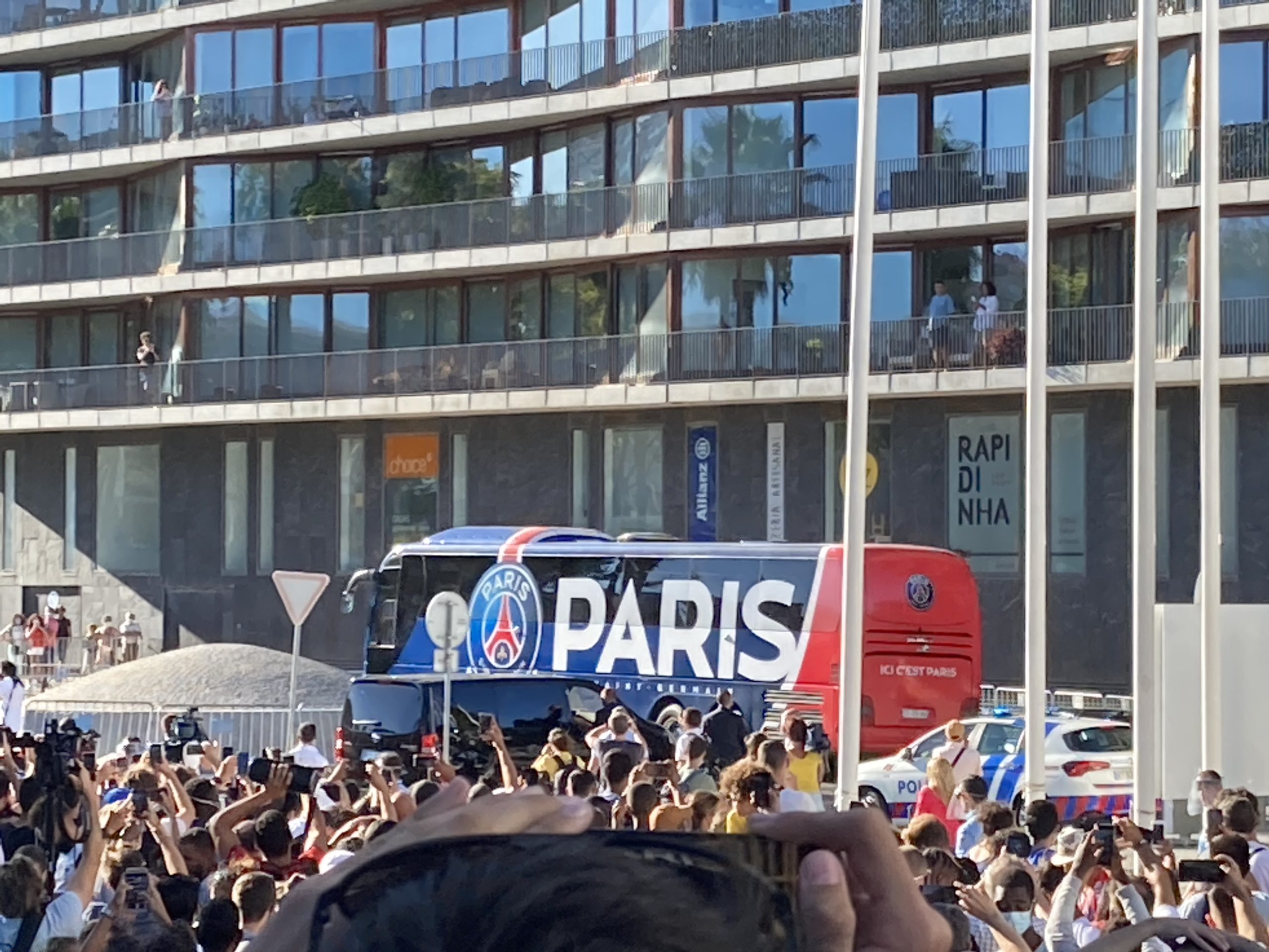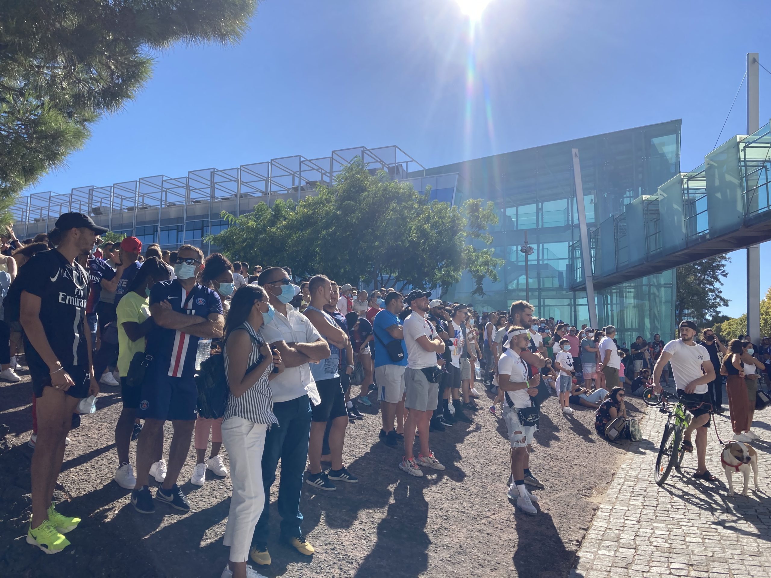 As numerosas esplanadas que se seguem umas às outras nesta bela zona pedonal de Lisboa, junto ao Tejo e ao hotel de luxo onde a equipa do PSG esteve instalada, foram tomadas de assalto – sobretudo por franceses, e também centenas e centenas de portugueses e brasileiros, todos apoiantes da equipa francesa.