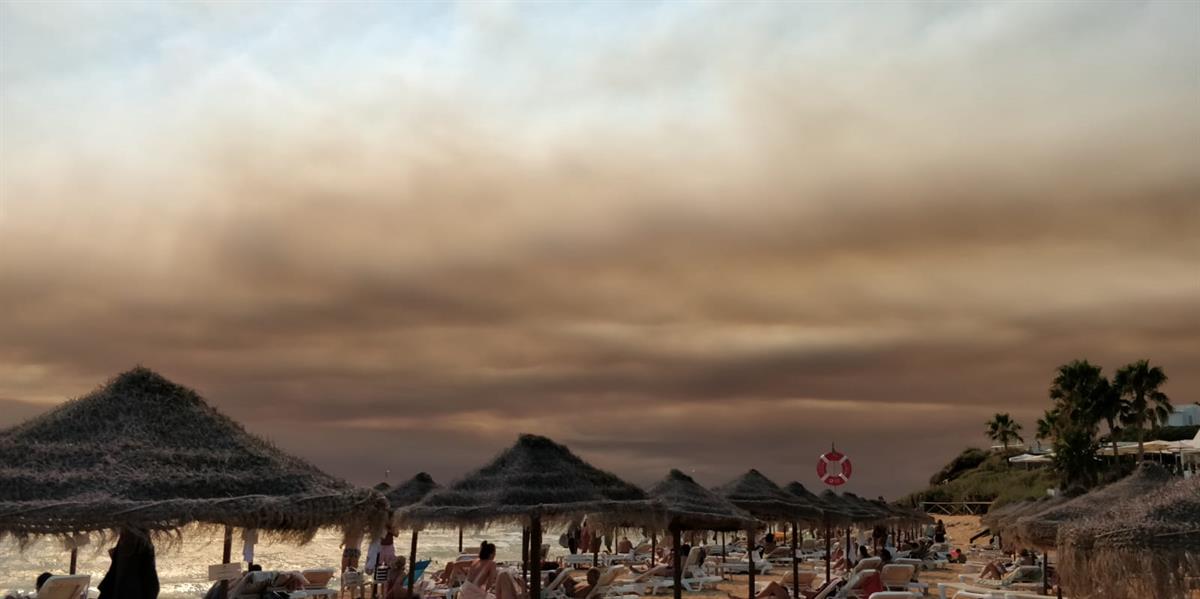 A nuvem negra de fumo e de cinza já chegou a praias arlgarvias e mesmo à cidade de Faro, capital do Algarve.