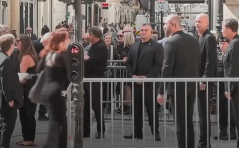 Ao lado da sua esposa, a jornalista Audrey Crespo-Mara, e dos filhos, também estiveram presentes amigos próximos como Laurent Baffie, com quem trabalhou durante muitos anos, assim como Philippe Corti, a deputada Raquel Garrido, que foi comentadora do programa Salut les Terriens, e a jornalista Léa Salamé, que o entrevistou várias vezes recentemente no programa Quelle époque! e na rádio France Inter.