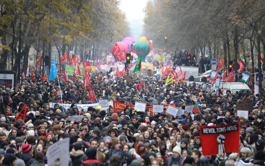 Os sindicatos anunciam centenas de milhares de pessoas mobilizadas no primeiro dia da greve geral contra a revisão do sistema de cálculo das pensões de reforma.