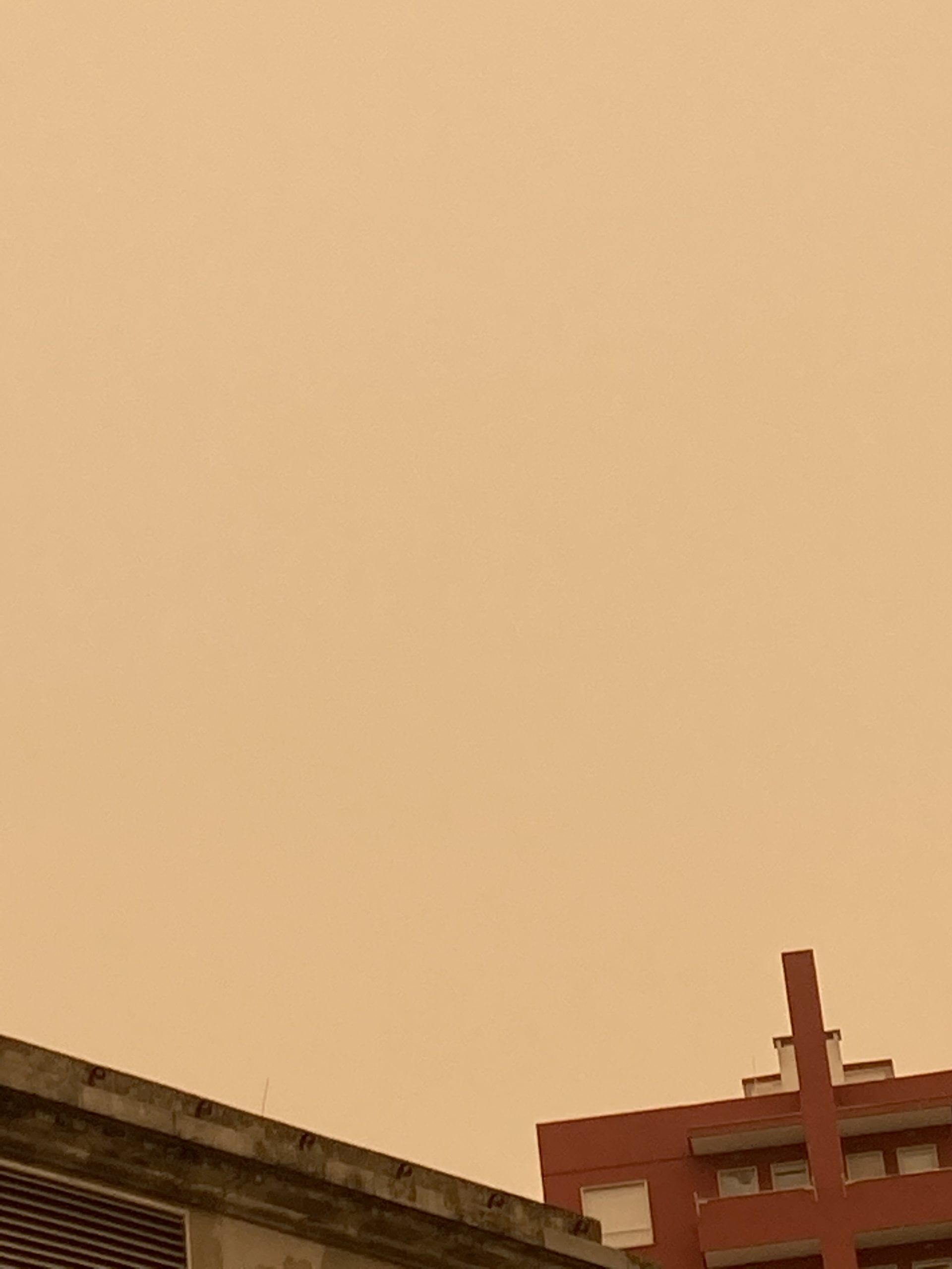 Uma grande nuvem de areia tem estado a sobrevoar Espanha, Portugal e França nas últimas horas, tornando o céu alaranjado e escurecendo-o e com uma evidente degradação da qualidade do ar ao mesmo tempo.