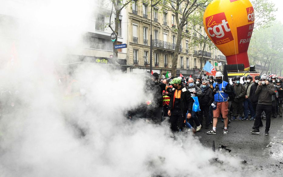 (Foto Le Parisien: Les militants de la CGT ont été pris à partie à la fin du parcours parisien. AFP/Bertrand GUAY)