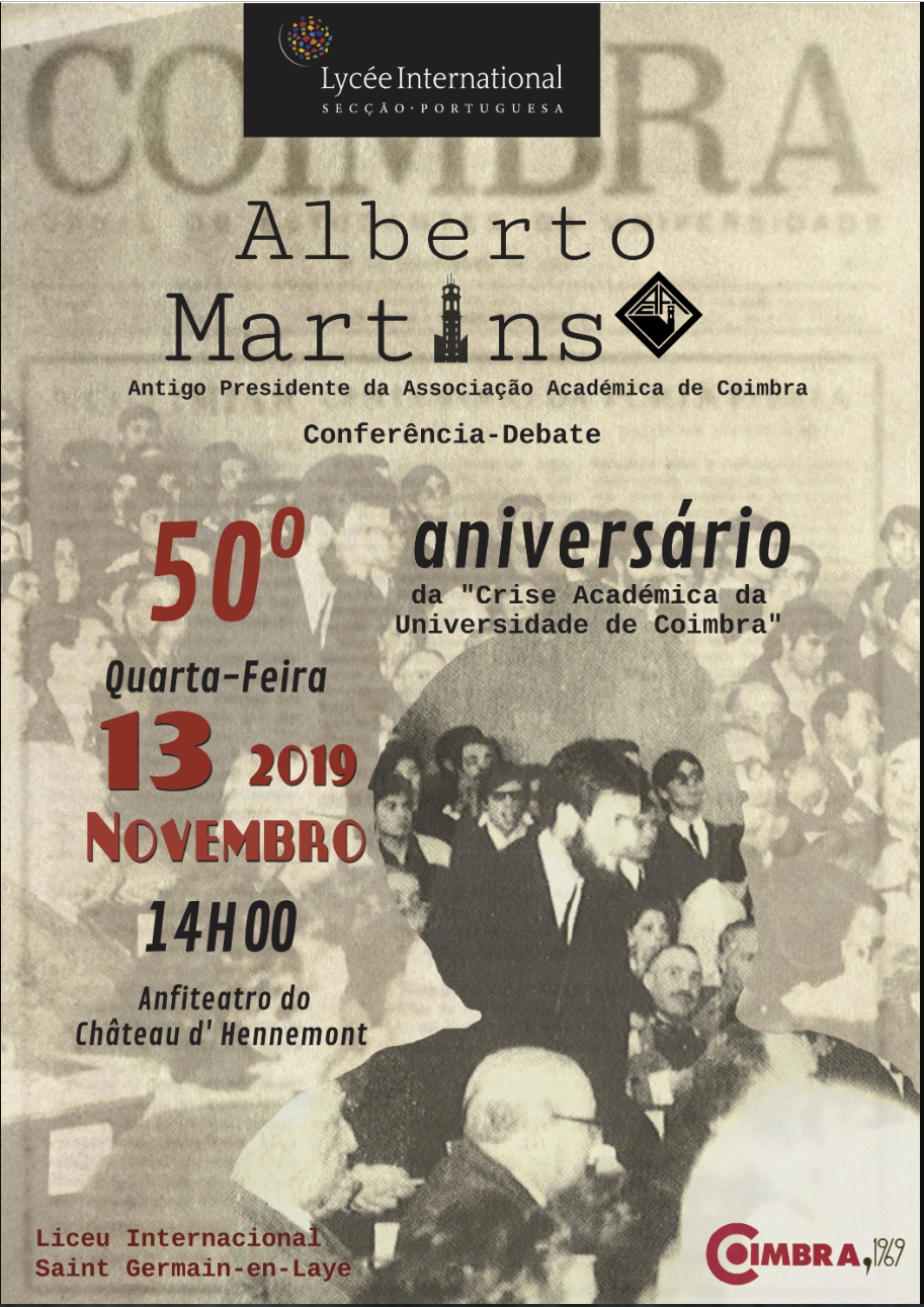 -Comemoração do “50° aniversário da Crise Académica de Coimbra/1969”, organizada no dia 13 de Novembro, pela Secção Portuguesa do Liceu Internacional de Saint-Germain-en-Laye, com a presença de Alberto Martins, na altura, Presidente da Associação Académica de Coimbra (AAC)