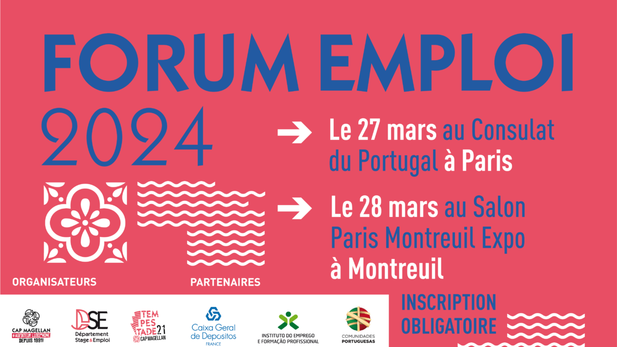 –Forum Emploi 2024, dia 27 de março no Consulado de Portugal em Paris e dia 28 de