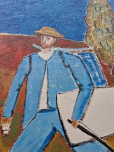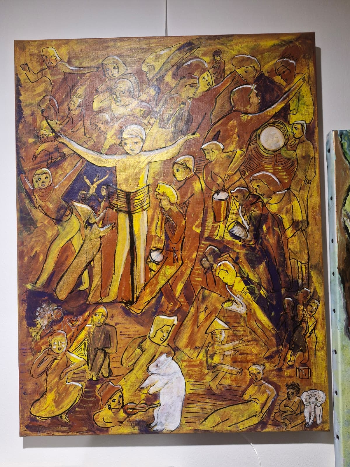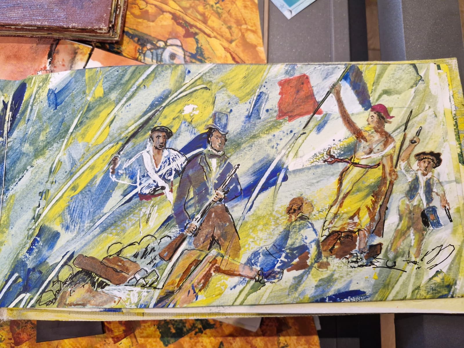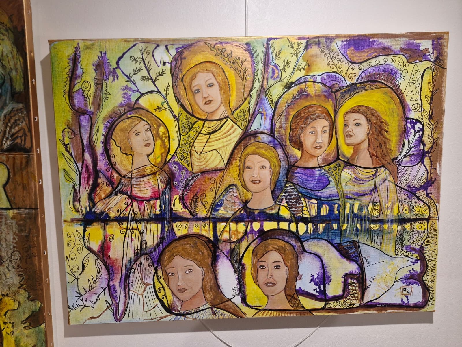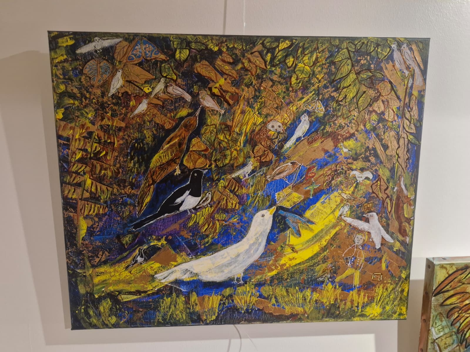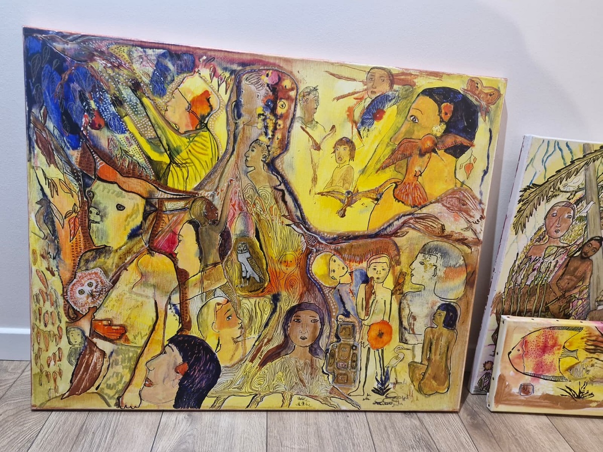 Dans son atelier, où nous l’avons rencontrée vendredi dernier, les couleurs éclatent immédiatement. Sur les murs, les toiles composent un univers foisonnant, peuplé de personnages, de paysages oniriques et de scènes qui semblent toutes raconter une histoire. Une peinture lumineuse et profondément joyeuse, qui invite le visiteur à voyager dans un monde où l’imaginaire tient une place centrale.