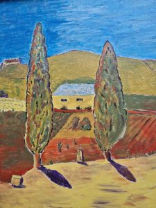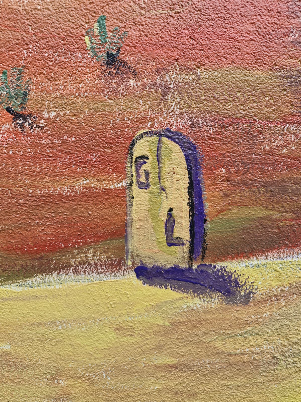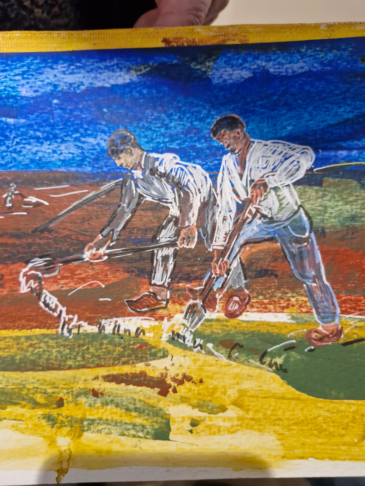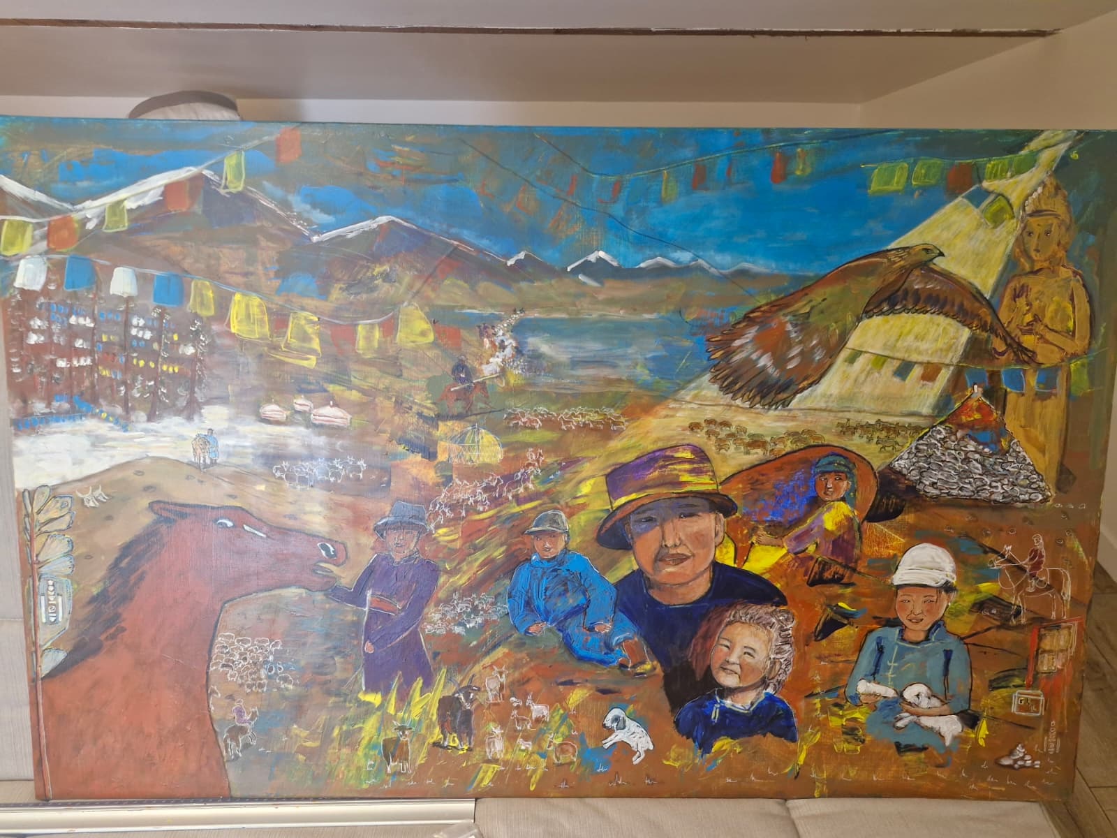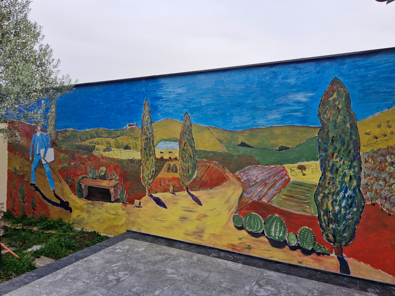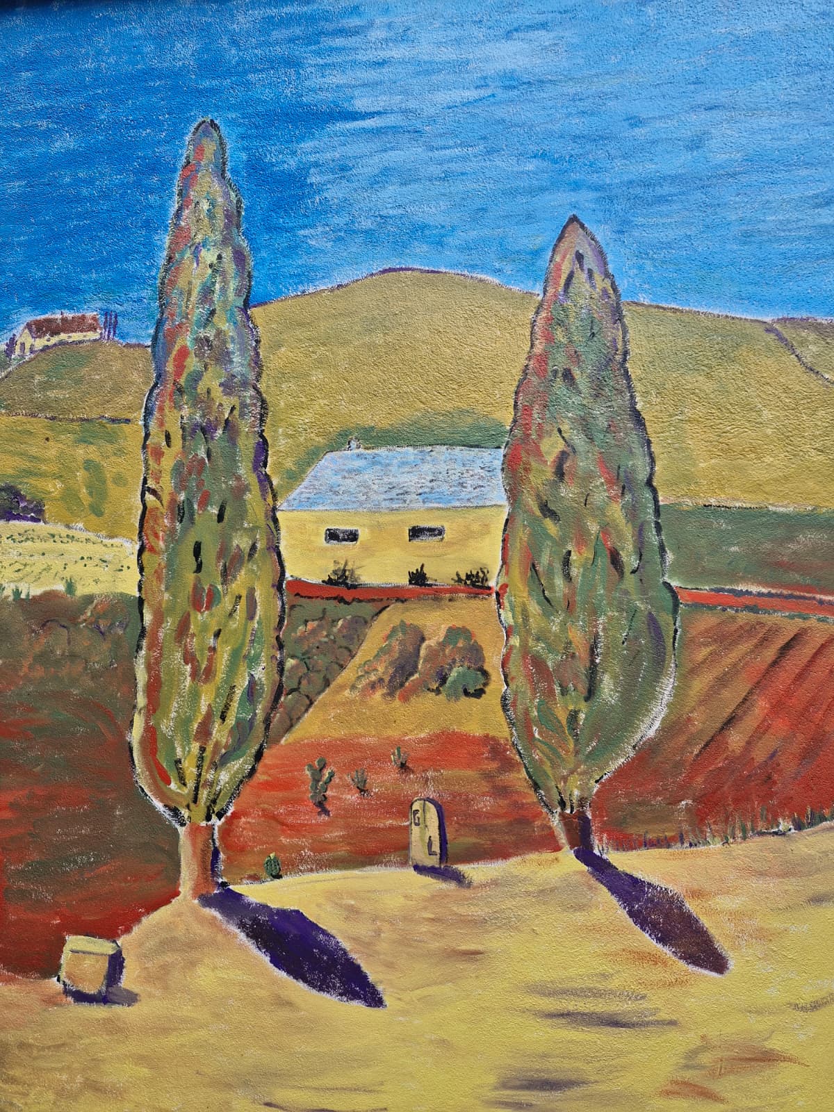 Dans son atelier, où nous l’avons rencontrée vendredi dernier, les couleurs éclatent immédiatement. Sur les murs, les toiles composent un univers foisonnant, peuplé de personnages, de paysages oniriques et de scènes qui semblent toutes raconter une histoire. Une peinture lumineuse et profondément joyeuse, qui invite le visiteur à voyager dans un monde où l’imaginaire tient une place centrale.