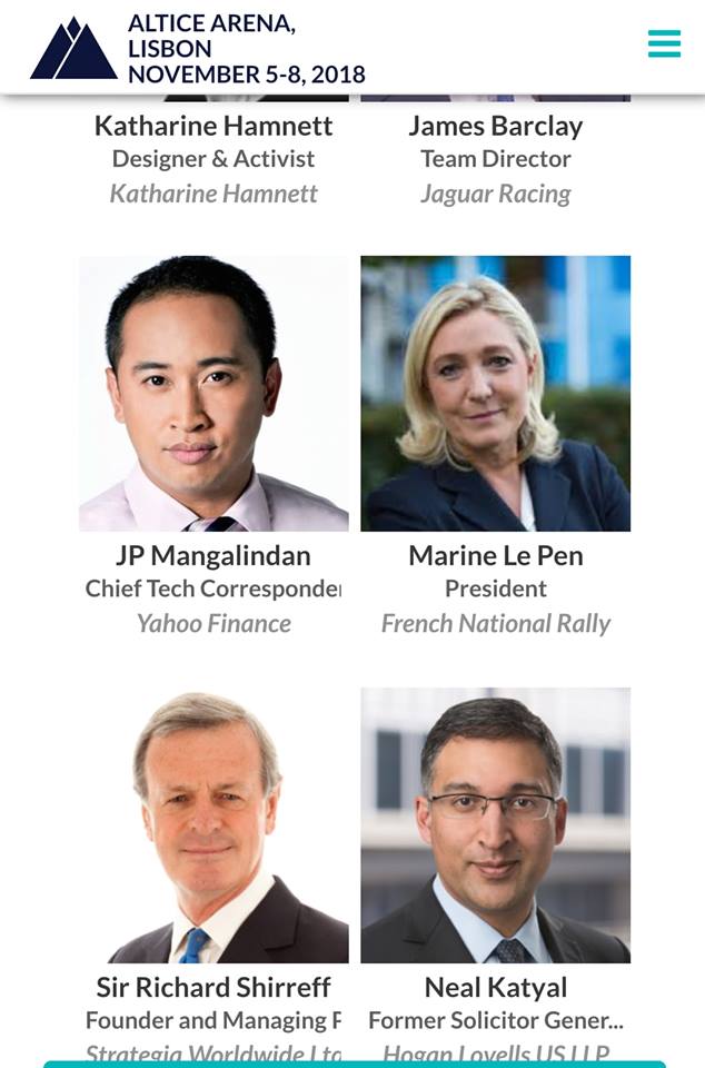 SOS Racismo exige retirada de Marine Le Pen de lista de oradores na WebSummit. O nome de Marine Le Pen voltou a aparecer como oradora no evento, após ter sido inicialmente retirado do site oficial
