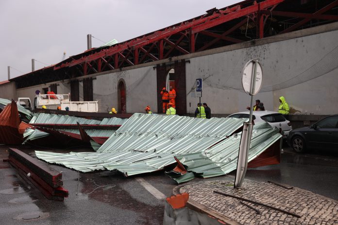 Contactada pela Lusa, fonte dos Sapadores Bombeiros de Lisboa adiantou que “parte da cobertura do edifício de manutenção da Estação de Santa Apolónia, composta por chapas, soltou-se, caindo na rua, provocando danos em algumas viaturas”.