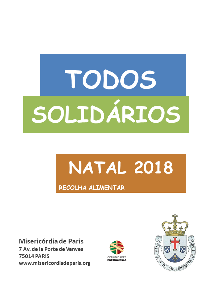 A Santa Casa da Misericórdia de Paris informa que a sua campanha de recolha de produtos alimentares terá lugar durante os primeiros 15 dias de dezembro de 2018.
