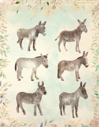 Os burros estão associados historicamente às estações de pobreza e aos pobres. É certo que se diz que o carro funerário de Alexandre Magno foi escoltado, de Babilónia a Alexandria, por 64 burros magnificamente ornamentados com colares de preciosas pedras e pendentes dourados. E há um asno que cospe moedas de ouro numa das história dos irmãos Grimm. Mas não foi num burro assim que Abraão subiu ao monte Moriá para sacrificar Isaac nem que Maria e José viajaram até ao Egito para salvar Jesus.