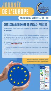 -O dia da Europa vai ser comemorado no Lycée Honoré de Balzac (Paris 17) no dia 7 de maio com a presença do Maire do 17° bairro parisiense, do Reitorado, da Maison de l’Europe e os cônsules das secções internacionais foram convidados a estarem presentes.