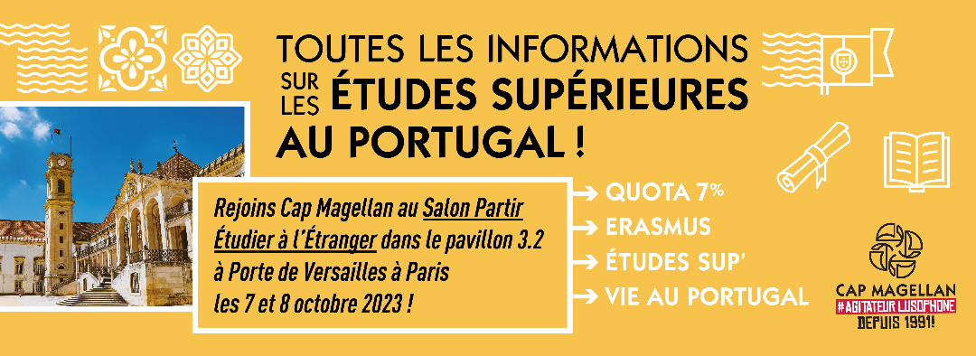 –Salon Partir Étudier à l’Étranger, dias 7 e 8 de Outubro no Parque de Exposições da Porte de Versailles. A associação Cap Magellan vai estar presente e organiza uma conferência digital sobre o tema “Vos études au Portugal”