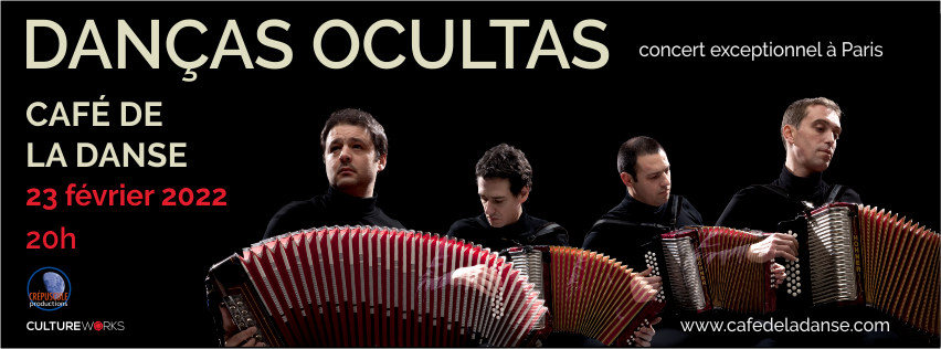 -Música: No âmbito da Temporada Cruzada França-Portugal, concerto do grupo Danças Ocultas, dia 23 de Fevereiro às 20h, no Café de la Dança, 5 passage Louis Philippe-Paris