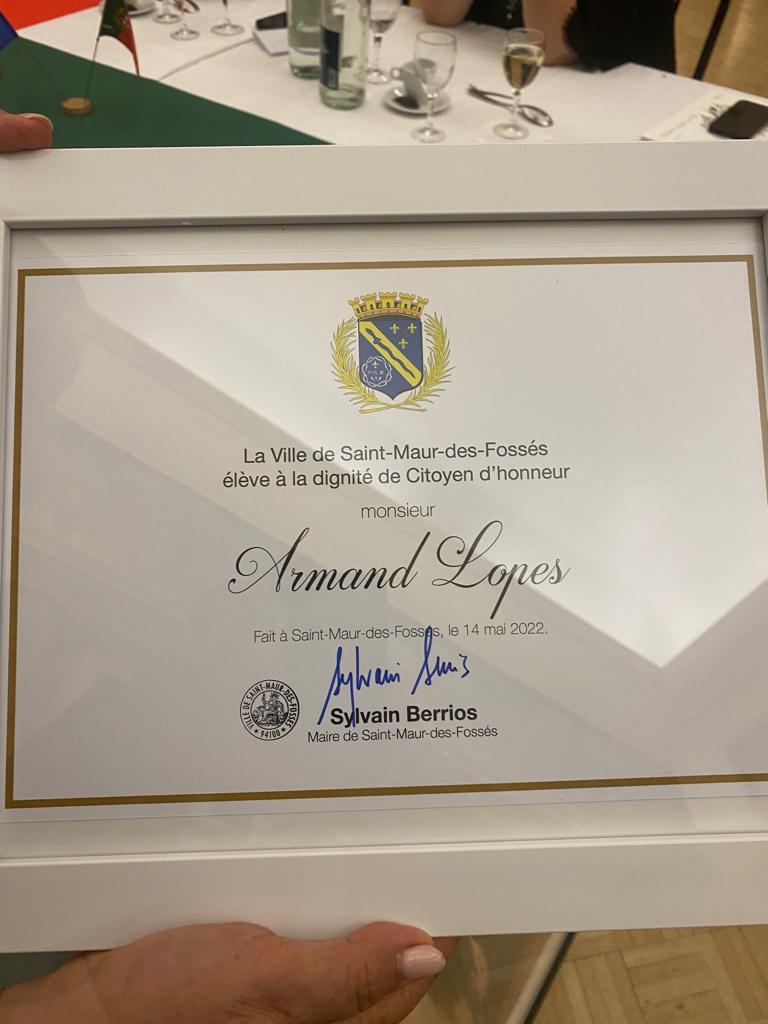 Presidente da Rádio Alfa, empresário e Comendador Armando Lopes, homenageado em Saint-Maur-des-Fossés (Região Parisiense). Inauguração ontem, sábado, 14, ao fim do dia, da Praça Leiria-Armando Lopes. Parabéns ao nosso Presidente, à família e a toda a Comunidade portuguesa de França. Por ocasião do 40º aniversário da geminação de Leiria e Saint-Maur.