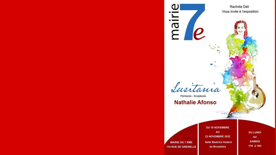 -Exposição “Lusitânia”, pinturas e esculturas de Nathalie Afonso, e apresentação do livro “Portugal, mon amour”, na Mairie de Paris 7, de 18 a 23 de Novembro