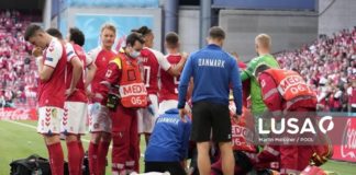 Choque no Euro de Futebol. Eriksen caiu inanimado no terreno, mas está a recuperar