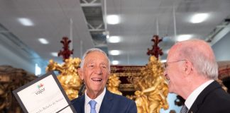 Marcelo recebe troféu « Português de Valor » durante uma receção a emigrantes em Lisboa