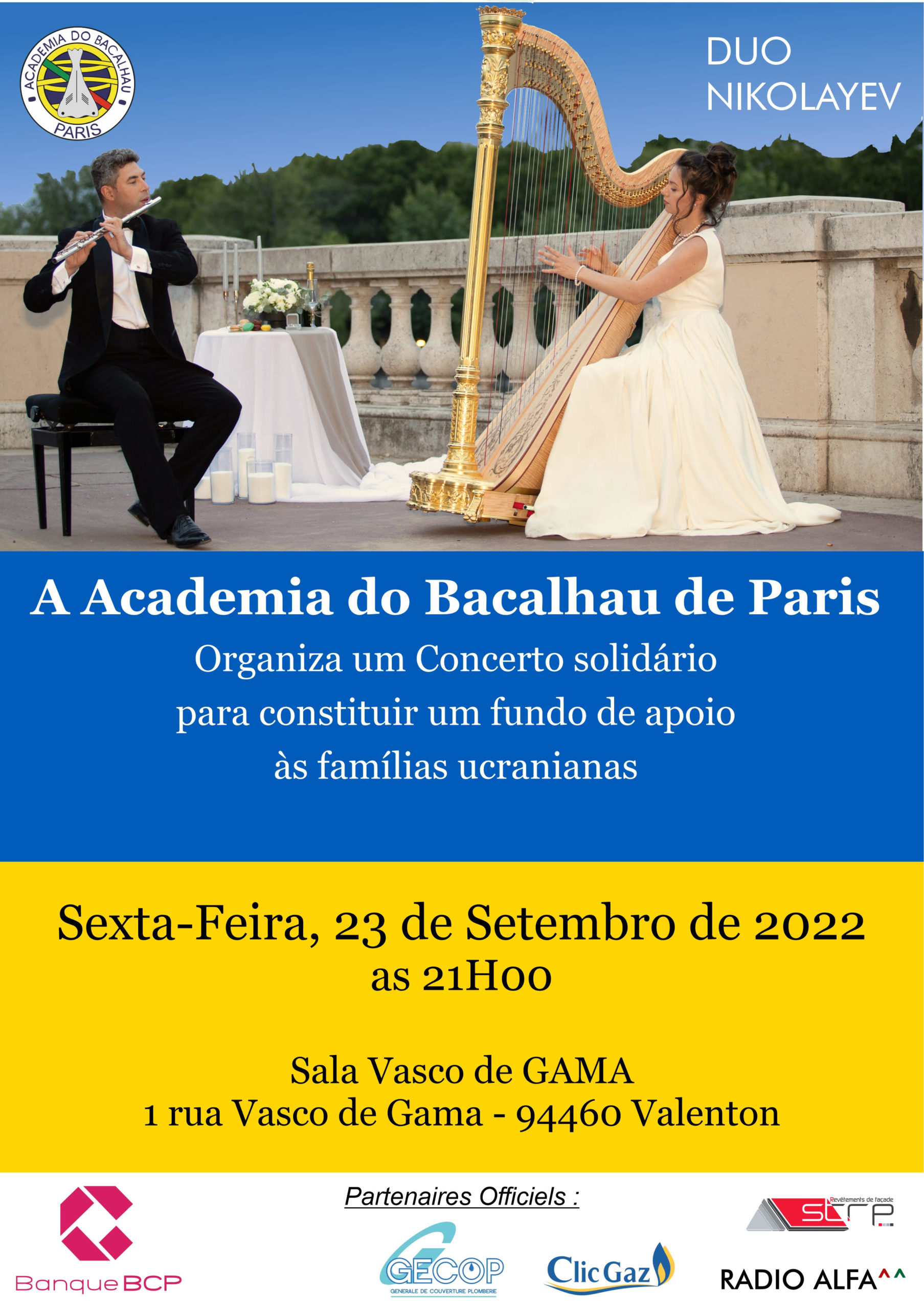Com este concerto de solidariedade, na sexta-feira, 23 de setembro de 2022 às 21h00, a Academia do Bacalhau de Paris pretende constituir um fundo de apoio às famílias ucranianas.