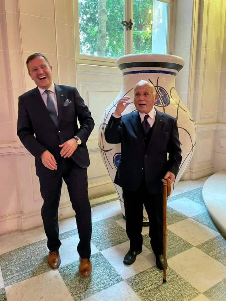 Mestre (pintor e ceramista) Manuel Cargaleiro, aqui com Hermano Sanches Ruivo, autarca de Paris, que já viu a exposição: