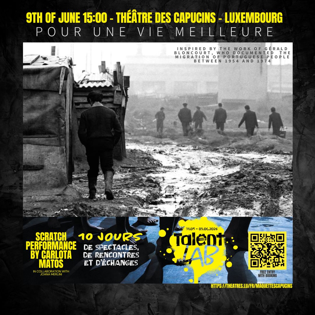 –Pour une vie meilleure – projecto artístico sobre a emigração portuguesa, no contexto do 50° aniversário da Revolução dos Cravos. Uma criação teatral desenvolvida com Les Théâtres de la Ville de Luxembourg