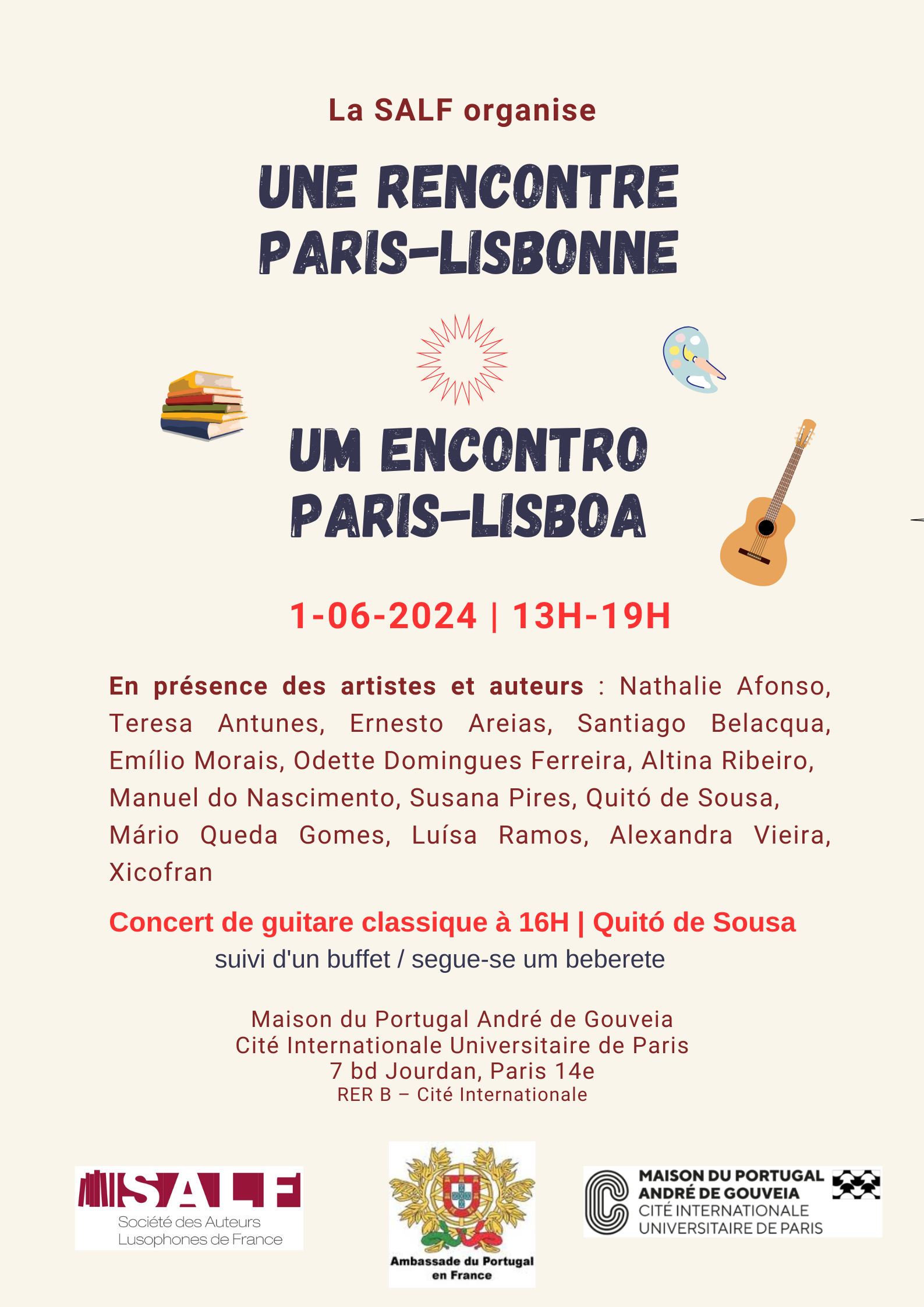 -A SALF (Société des Auteurs Lusophones de France) organiza um Encontro Paris-Lisboa no dia 1 de junho na Maison du Portugal André de Gouveia – Cité Internationale Universitaire de Paris, com a presença de autores de Portugal e de França